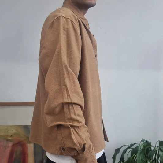 Woolrich Boxy Fit Cropped flannel Shirt long Sleeve large plain brown Button Up Skater Y2K Surf
