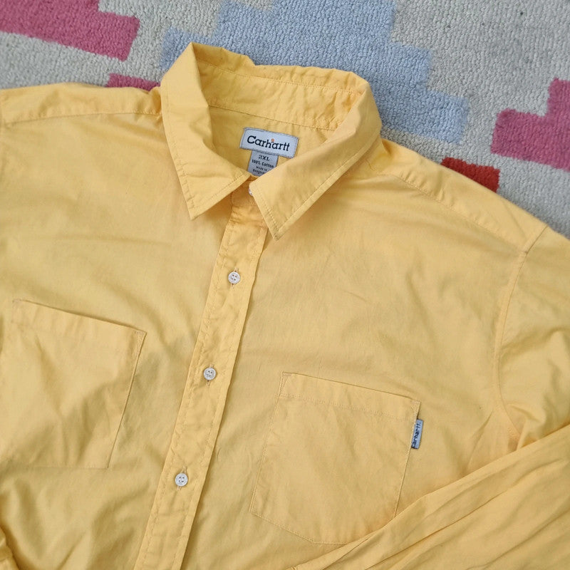 Carhartt Boxy Fit Cropped Shirt Long Sleeve XXL plain Yellow Button Up Skater Y2K Surf