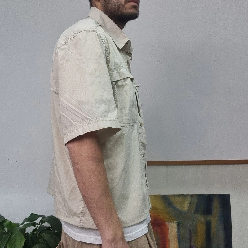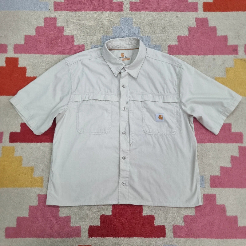 Carhartt Boxy Fit Cropped Shirt Short Sleeve large plain cream Button Up Skater Y2K Surf