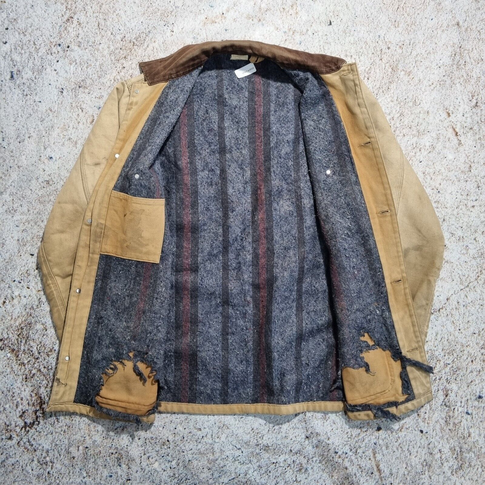 Jacket is in ok condition for its age. Shows general wear and has a unique fade to it. There are parts of the Blanket lining that has been distressed(see image)