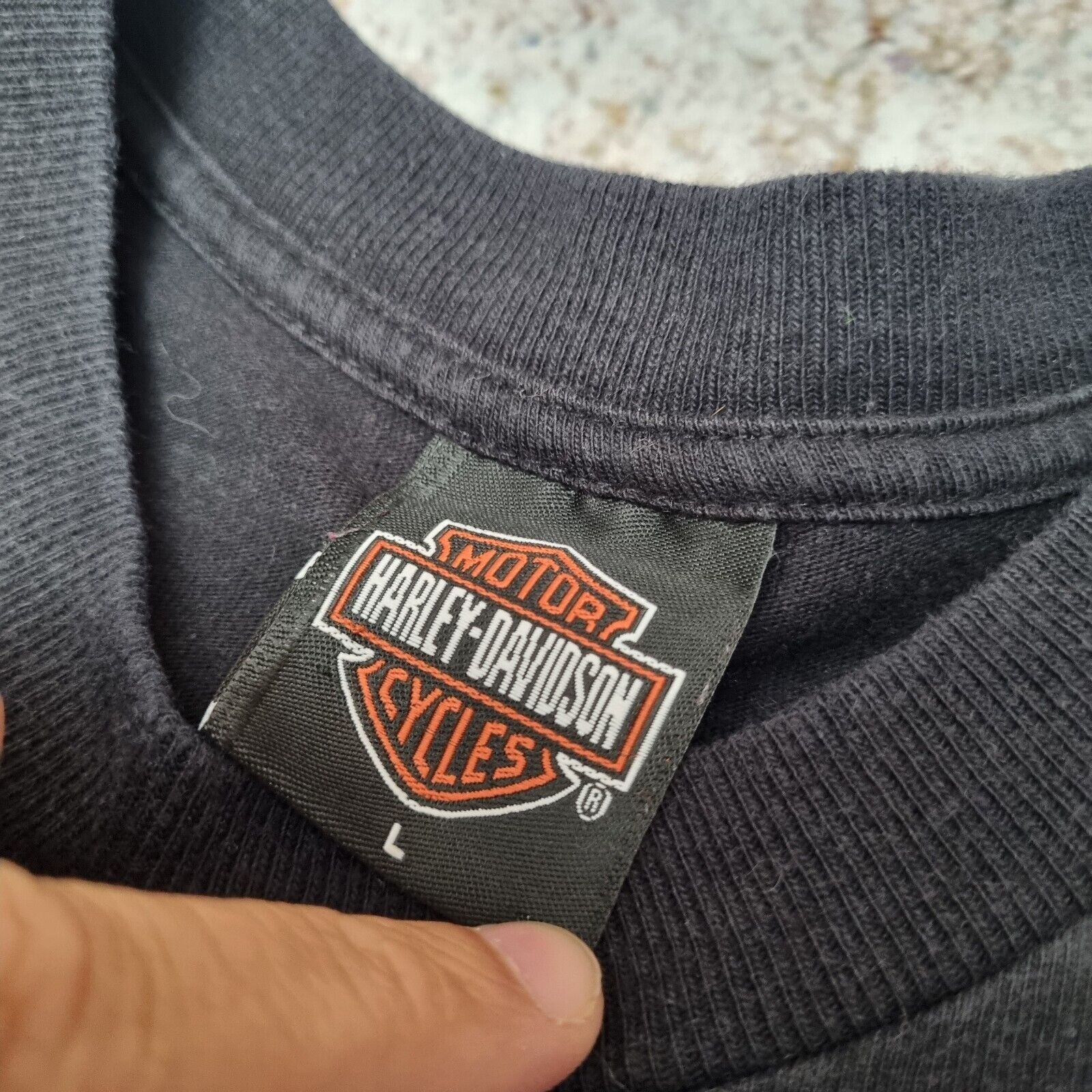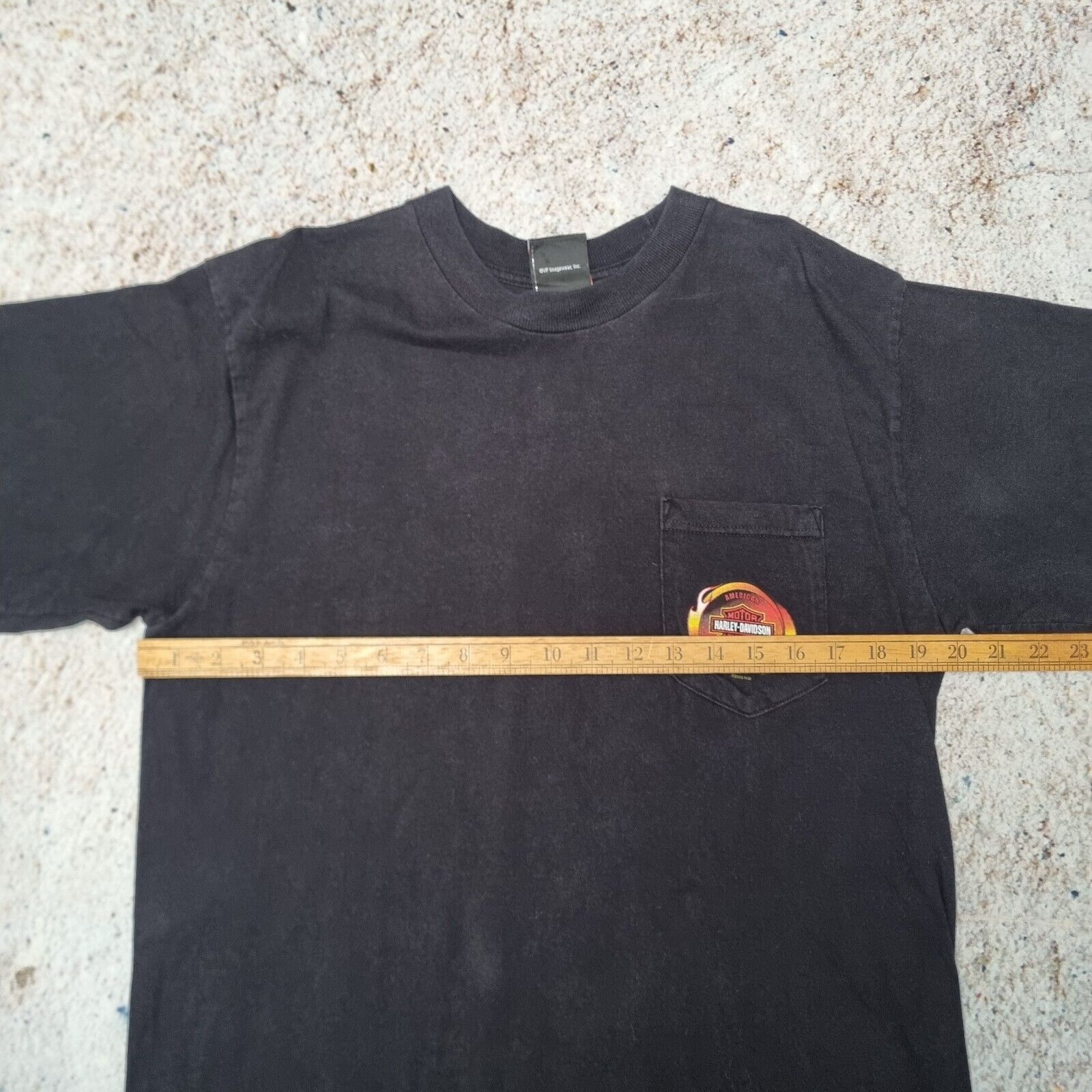 Harley Davidson Hickory T Shirt Size L Mens USA Engine Fire Black Pocket Tee