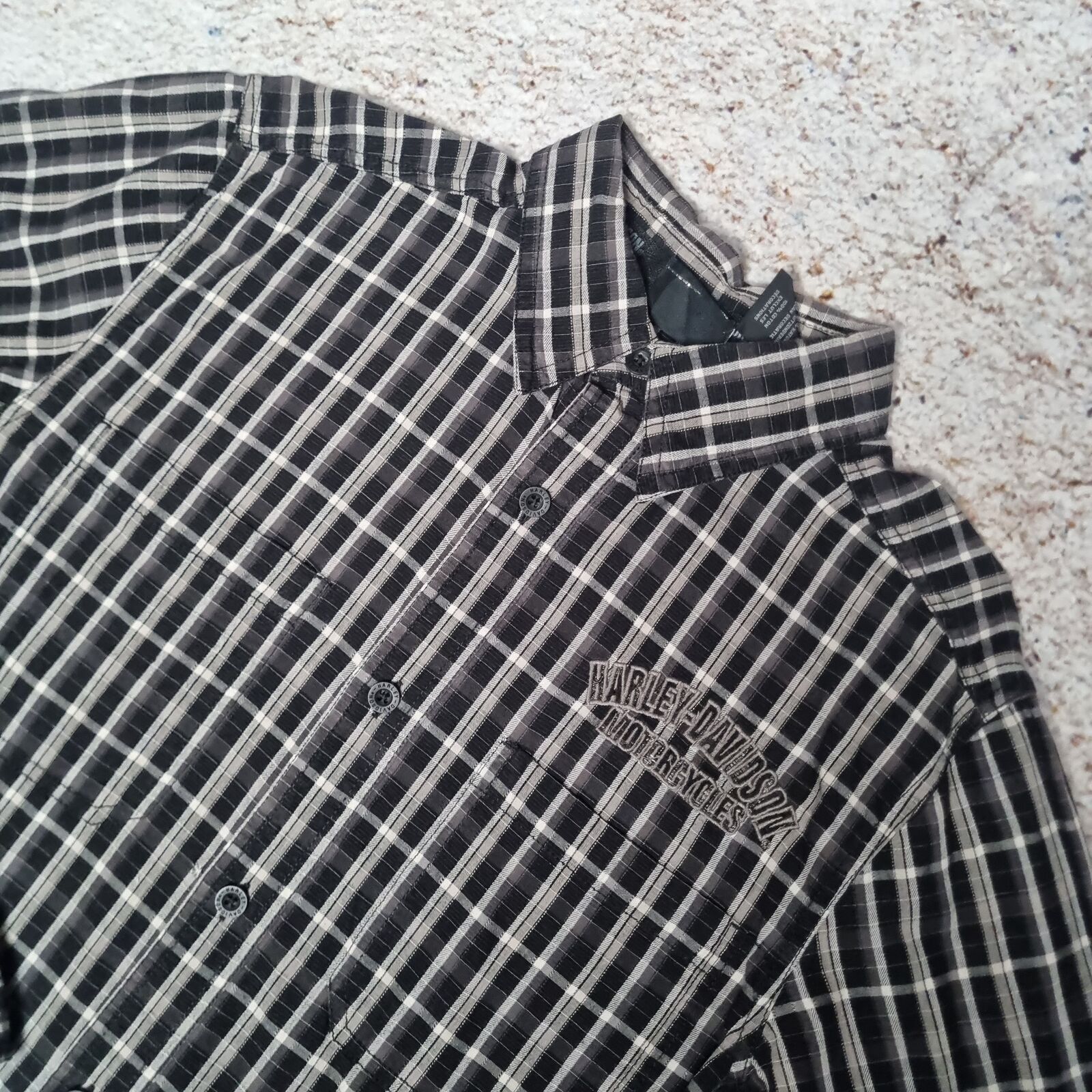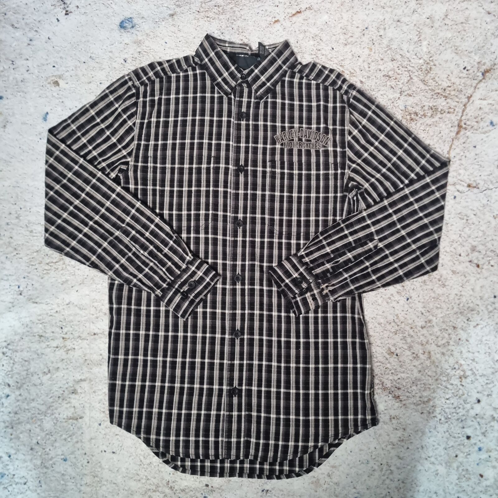 Harley Davidson Shirt Mens Long Sleeve Embroidered Biker - Black - Size S