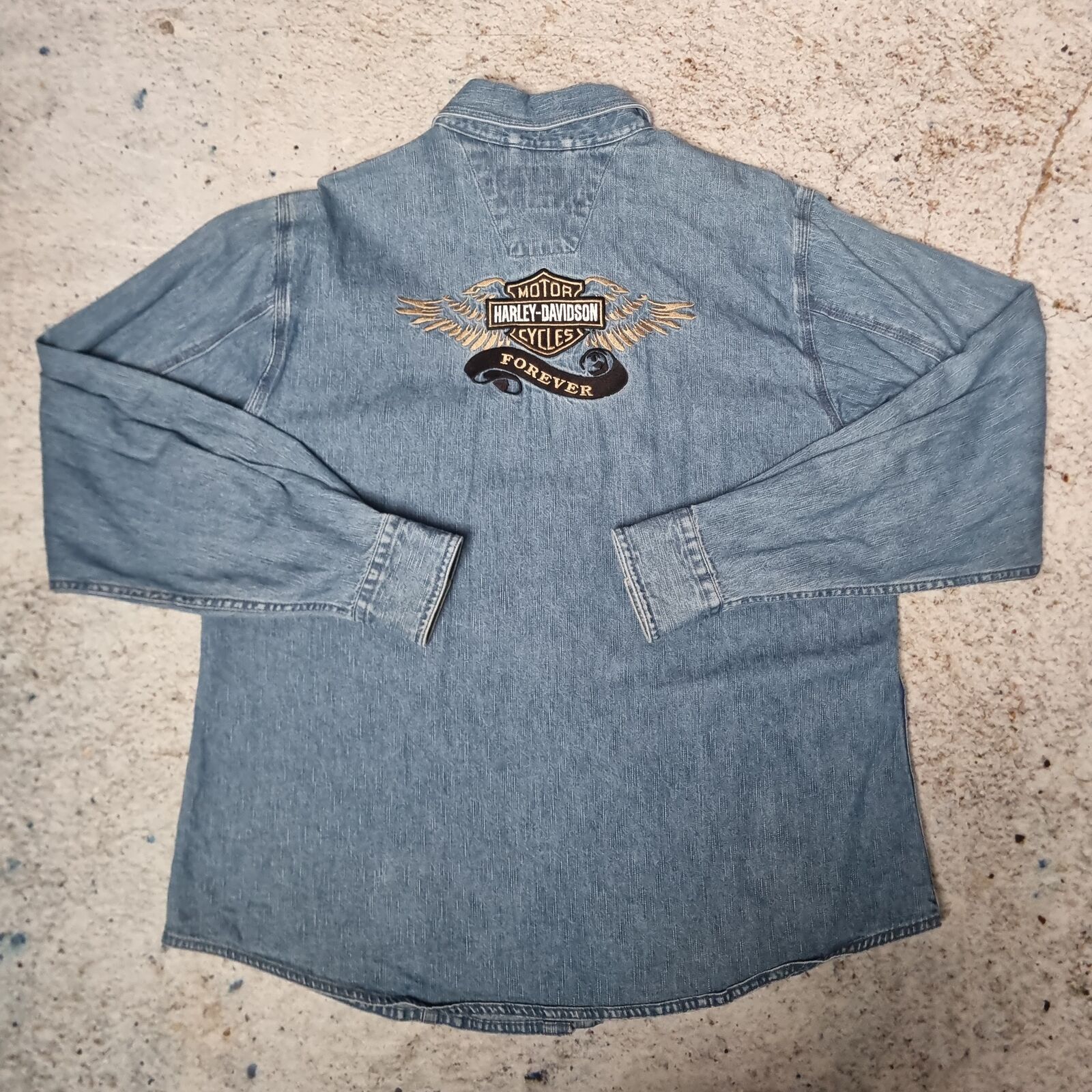 Harley Davidson Shirt Womens Denim Style Long Sleeve Biker - Blue - Size XL