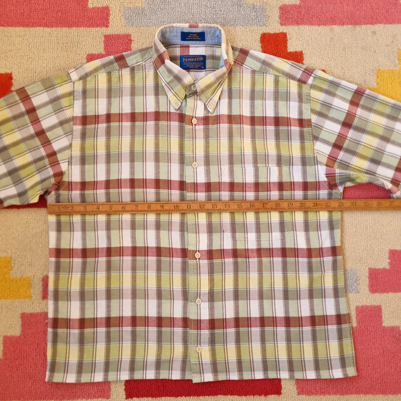 Pendleton Boxy Fit Cropped Shirt Short Sleeve large check multi Button Up Skater Y2K Surf