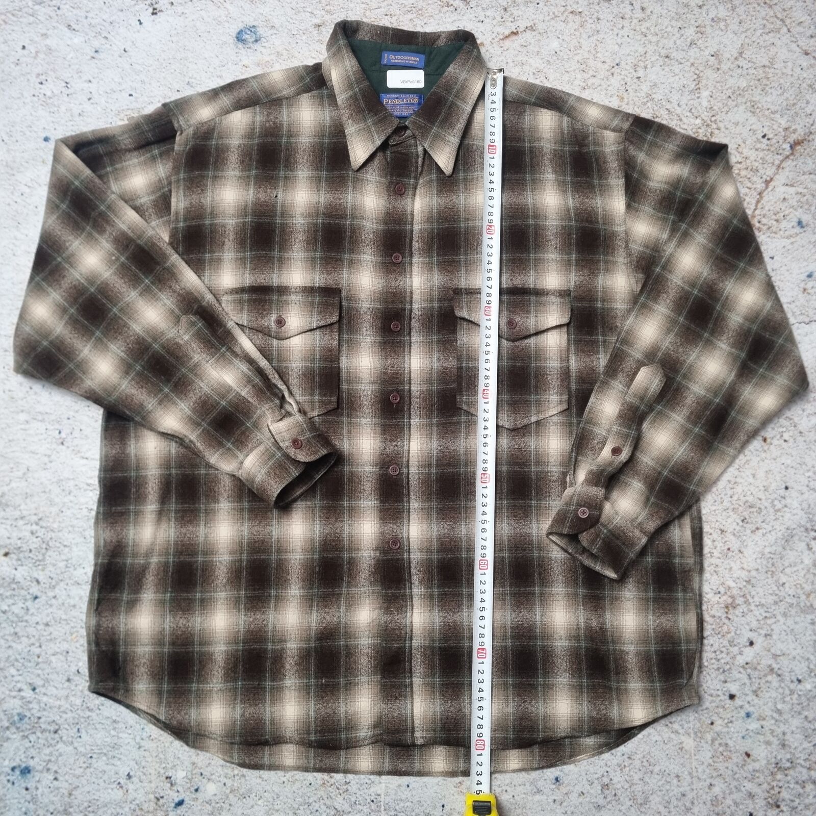 Pendleton Shirt Mens Checkered 100% Virgin Wool Flannel Button Up Brown Size XXL