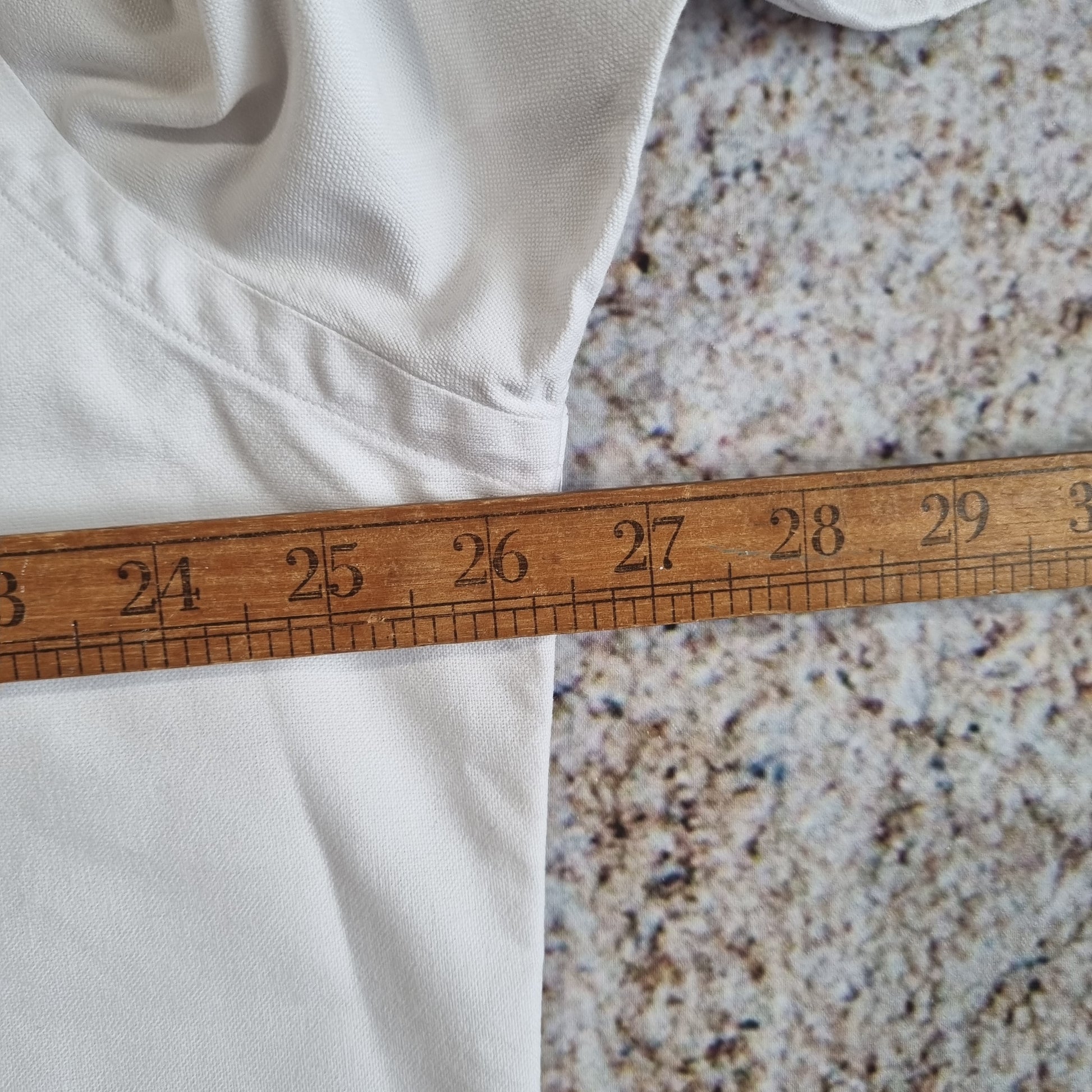 Shirt is in good condition, no rips or holes. Item has been washed and ironed.please note there are some some marks and some light frayings see images.