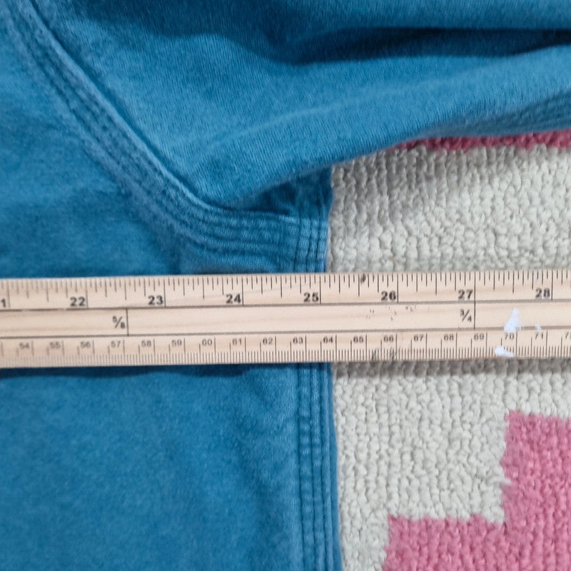 Shirt has been custom altered to a boxy fit by ourselves. With the hems taken in to prevent any fraying.