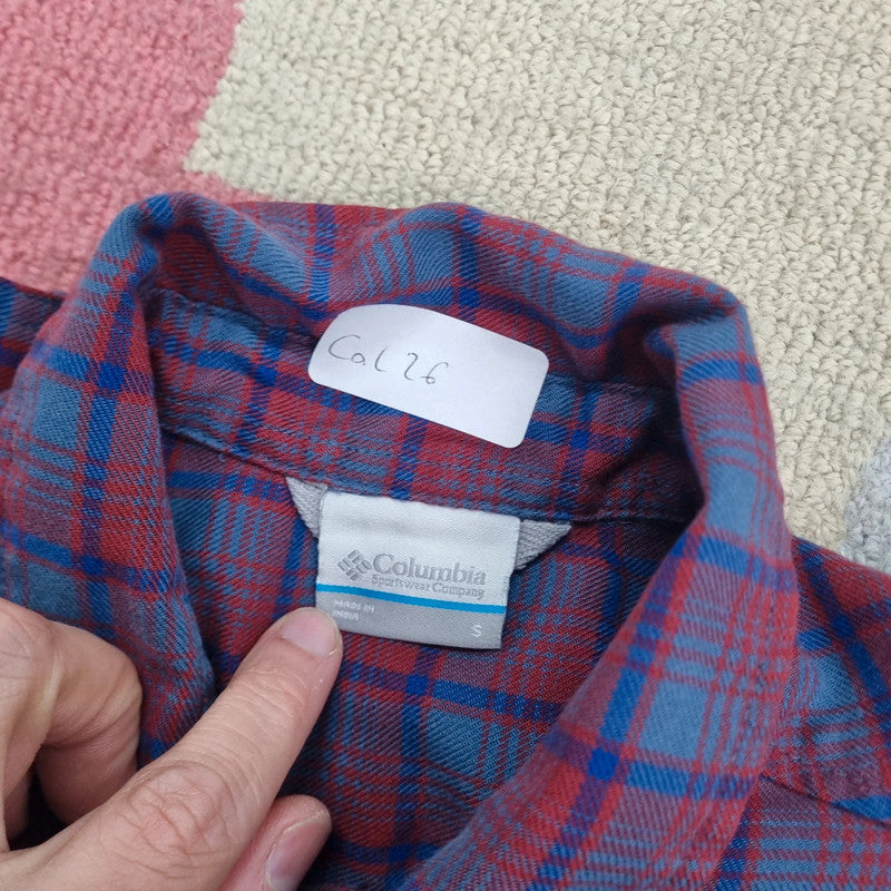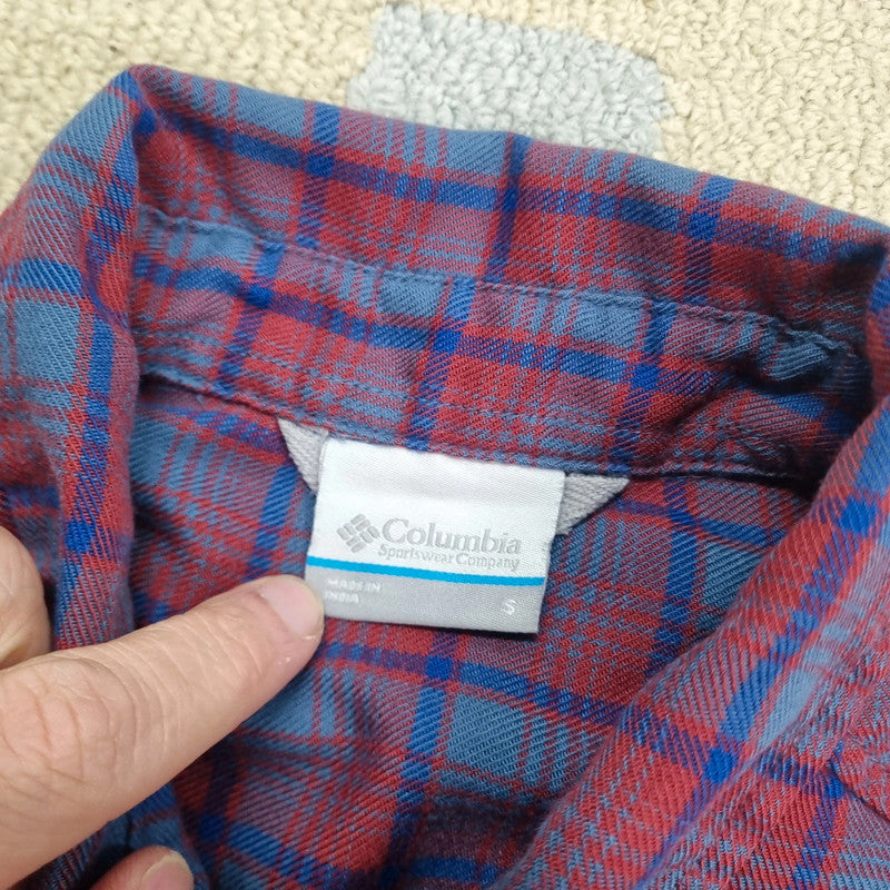 Vintage Columbia Boxy Fit Cropped Shirt Long Sleeve Small Check burgundy blue Button Up Skater