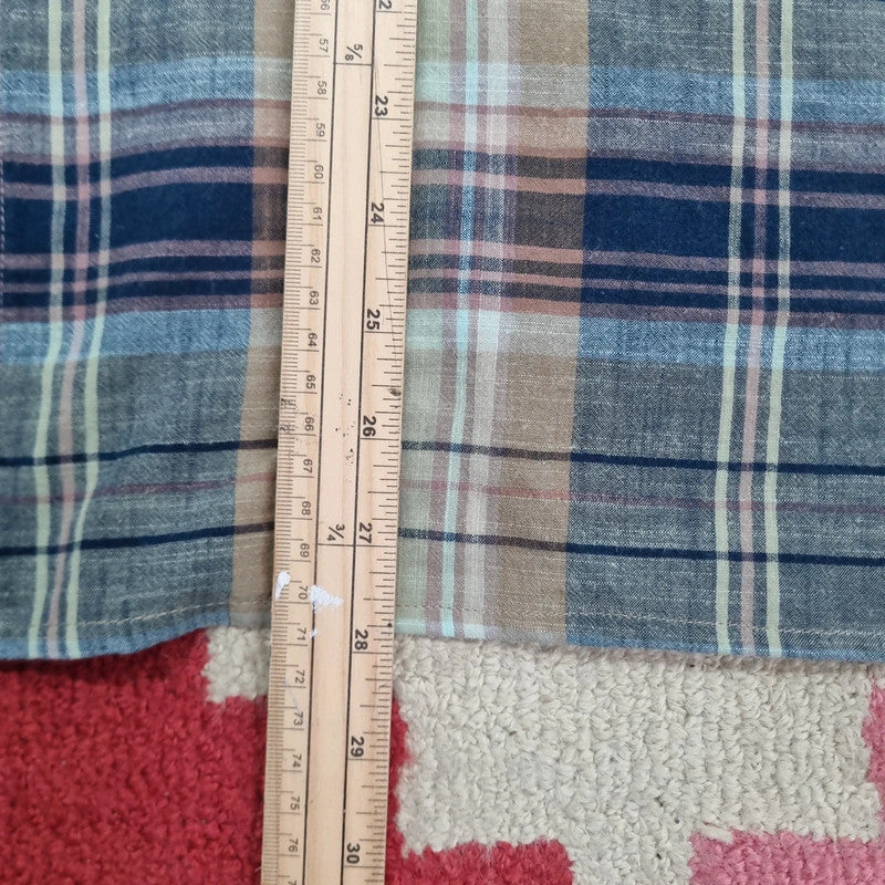 Shirt has been custom altered to a boxy fit by ourselves. With the hems taken in to prevent any fraying.