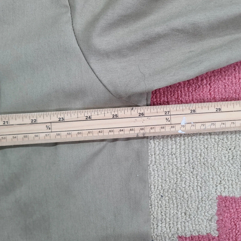 Shirt has been custom altered to a boxy fit by ourselves. With the hems taken in to prevent any fraying.