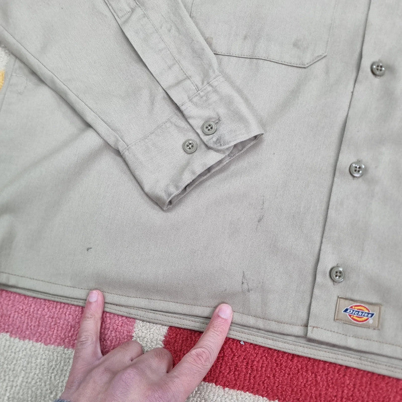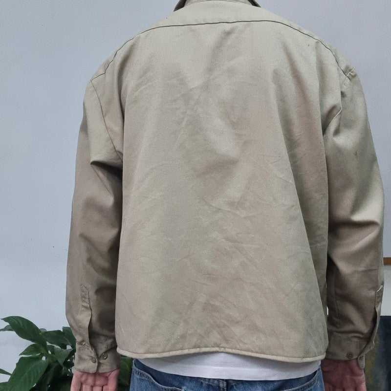 Vintage Dickies Boxy Fit Cropped Shirt Long Sleeve XL plain Beige Button Up Skater Y2K Surf