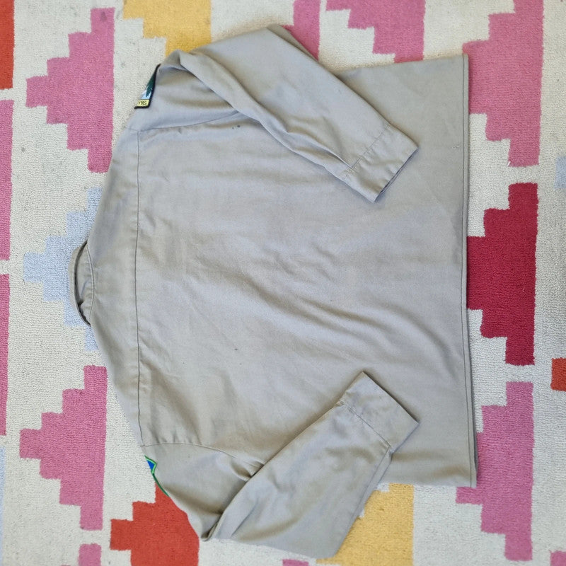 Vintage Dickies Boxy Fit Cropped Shirt Long Sleeve XXL plain Beige Button Up Skater Y2K Surf