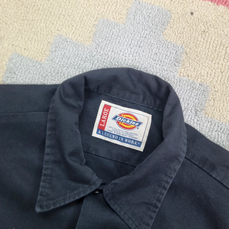 Vintage Dickies Boxy Fit Cropped Shirt Short Sleeve large plain Black Button Up Skater Y2K Surf