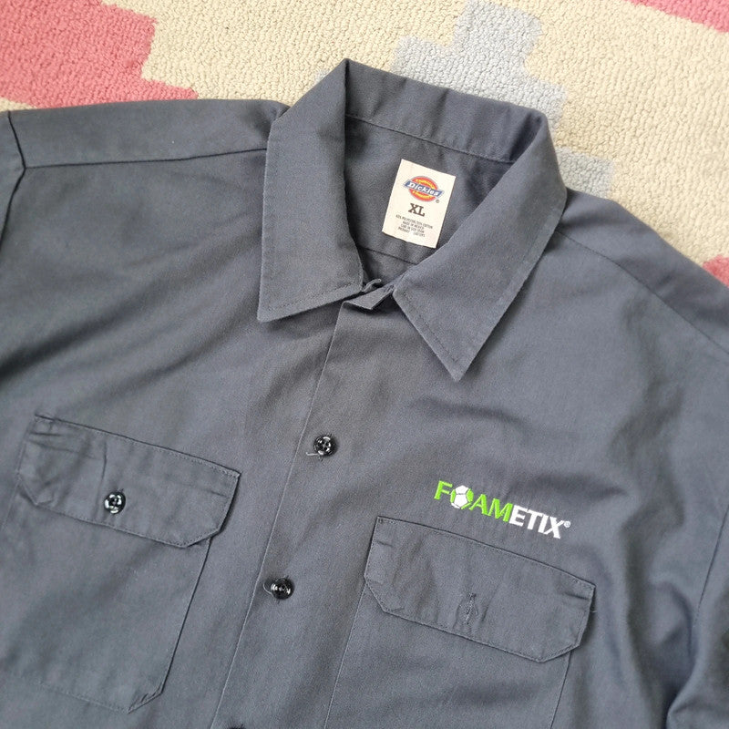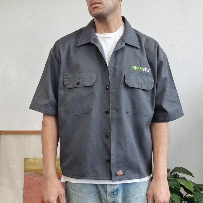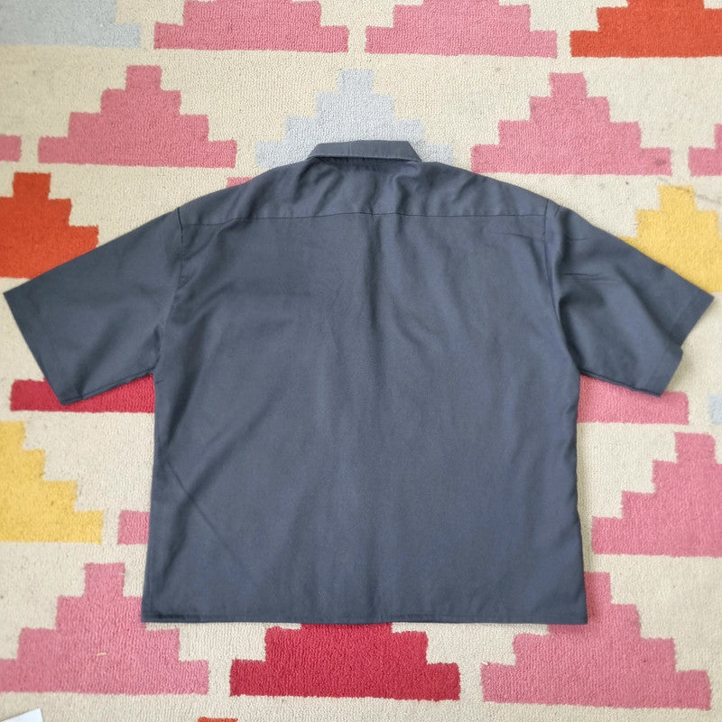 Vintage Dickies Boxy Fit Cropped Shirt Short Sleeve large plain grey button Up Skater Y2K Surf