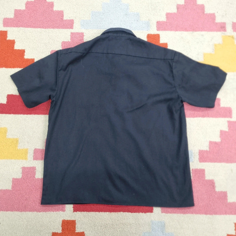 Vintage Dickies Boxy Fit Cropped Shirt Short Sleeve Medium plain Black Button Up Skater Y2K Surf