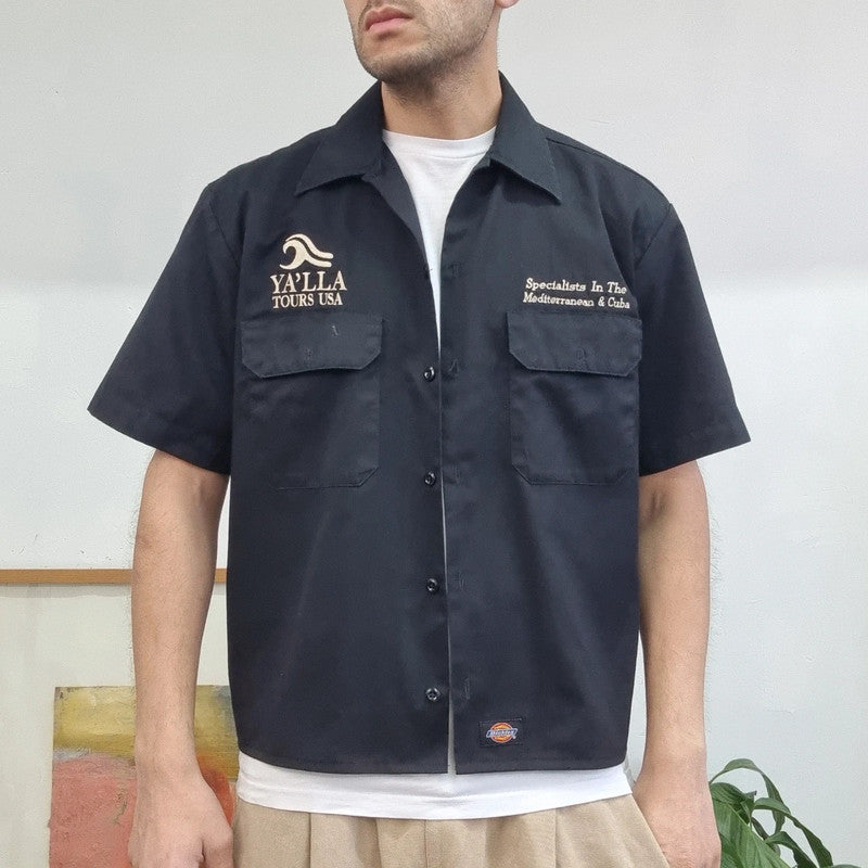 Vintage Dickies Boxy Fit Cropped Shirt Short Sleeve Medium plain Black Button Up Skater Y2K Surf