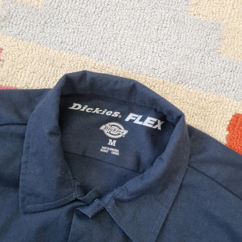 Vintage Dickies Boxy Fit Cropped Shirt short Sleeve medium plain Navy Button Up NY baseball