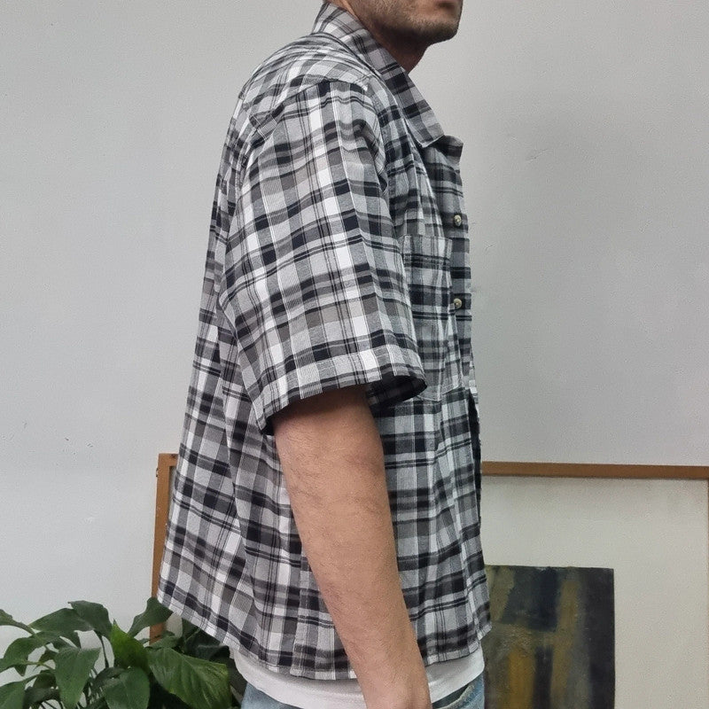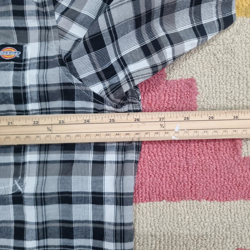 Vintage Dickies Boxy Fit Cropped Shirt Short Sleeve XL check Black Button Up Skater Y2K Surf