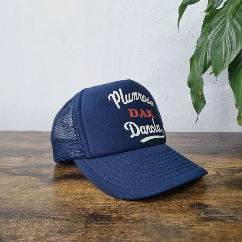 Vintage Plumrose Trucker Hat Snapback cap One size adjustable navy blue usa