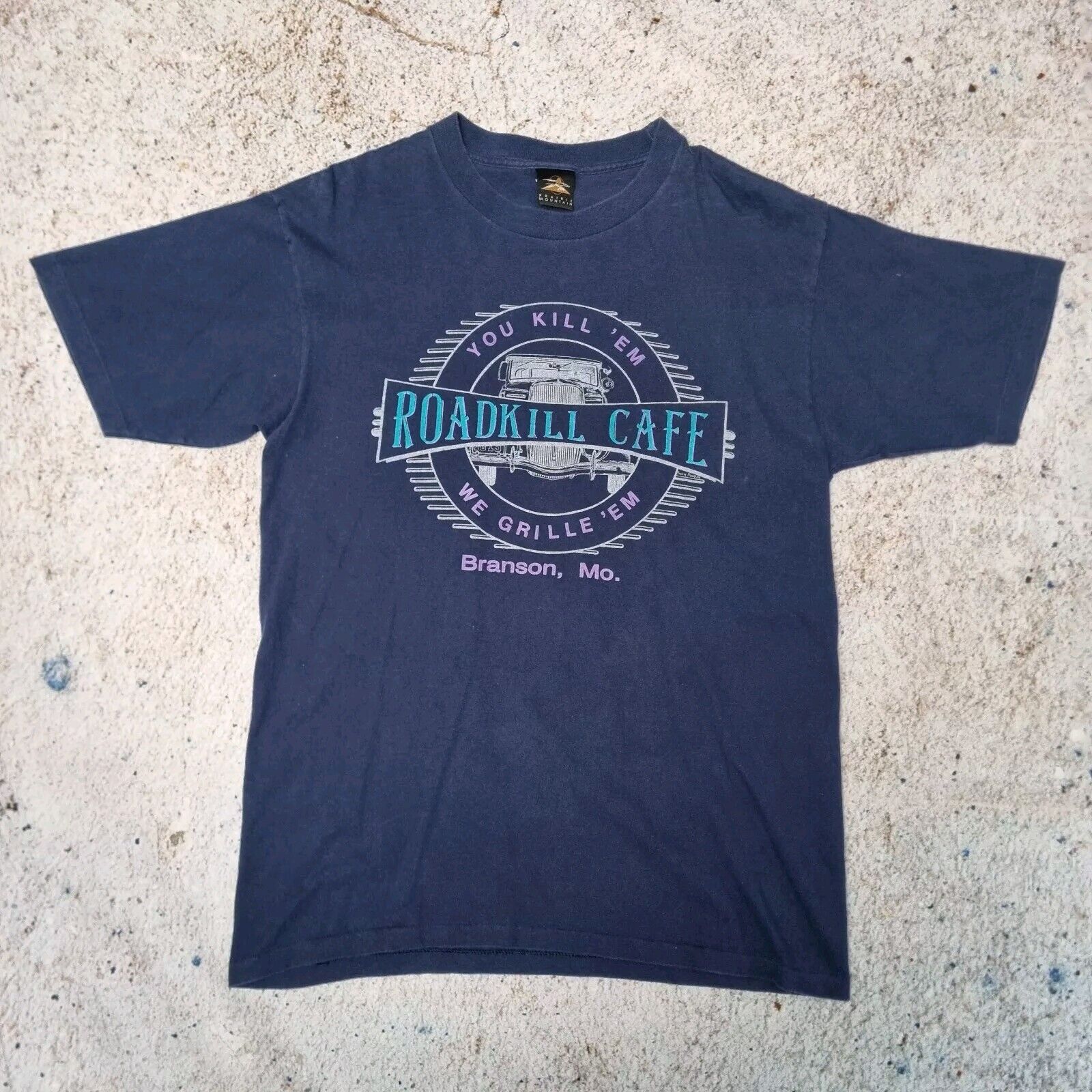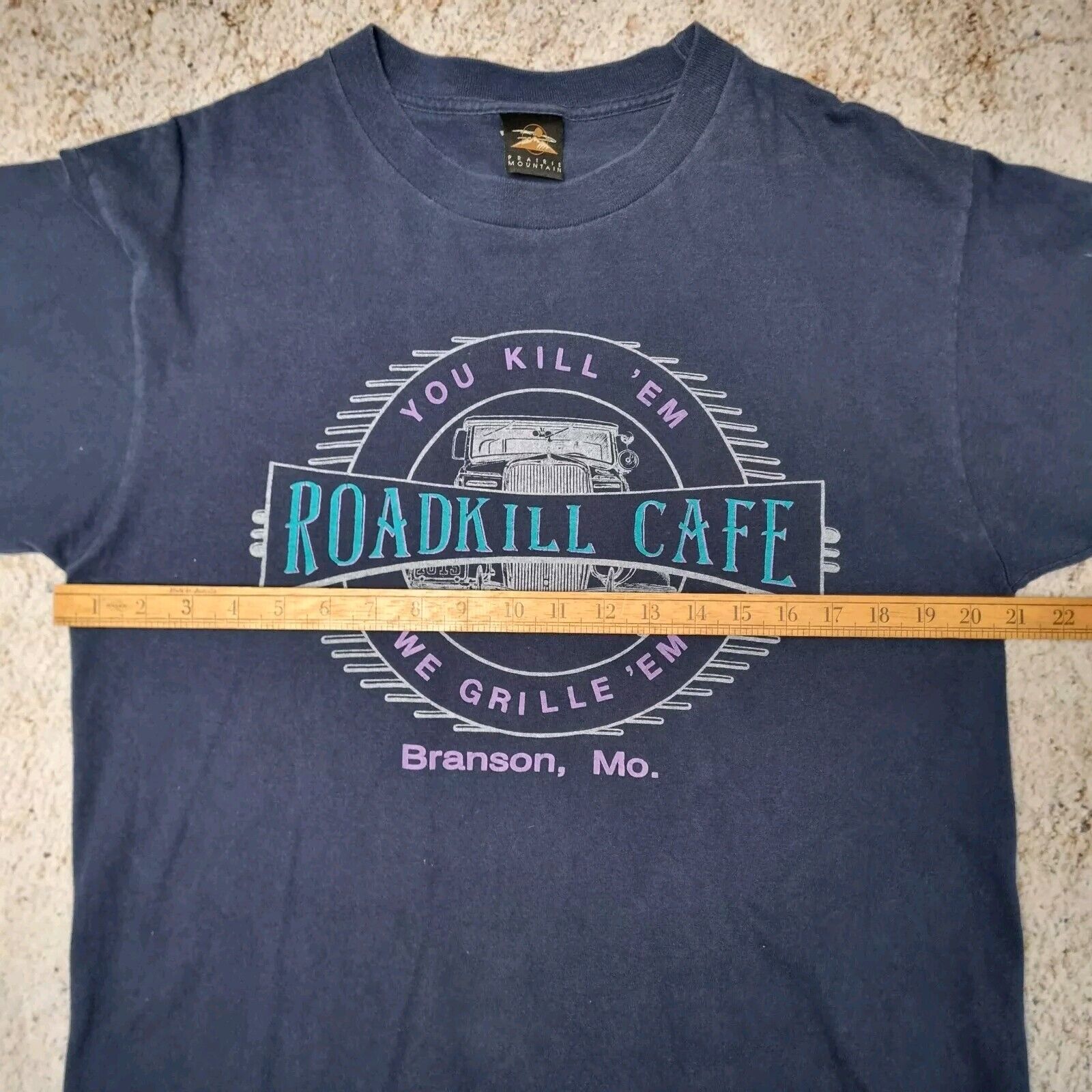 Vintage Roadkill Cafe Branson L Shirt Single-Stitch NAVY Made In USA