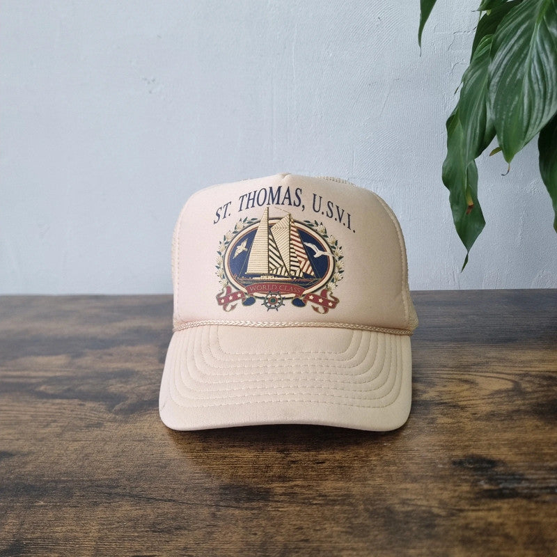 Vintage St. Thomas U.S. Virgin Islands trucker snapback hat cap cream one size adjustable